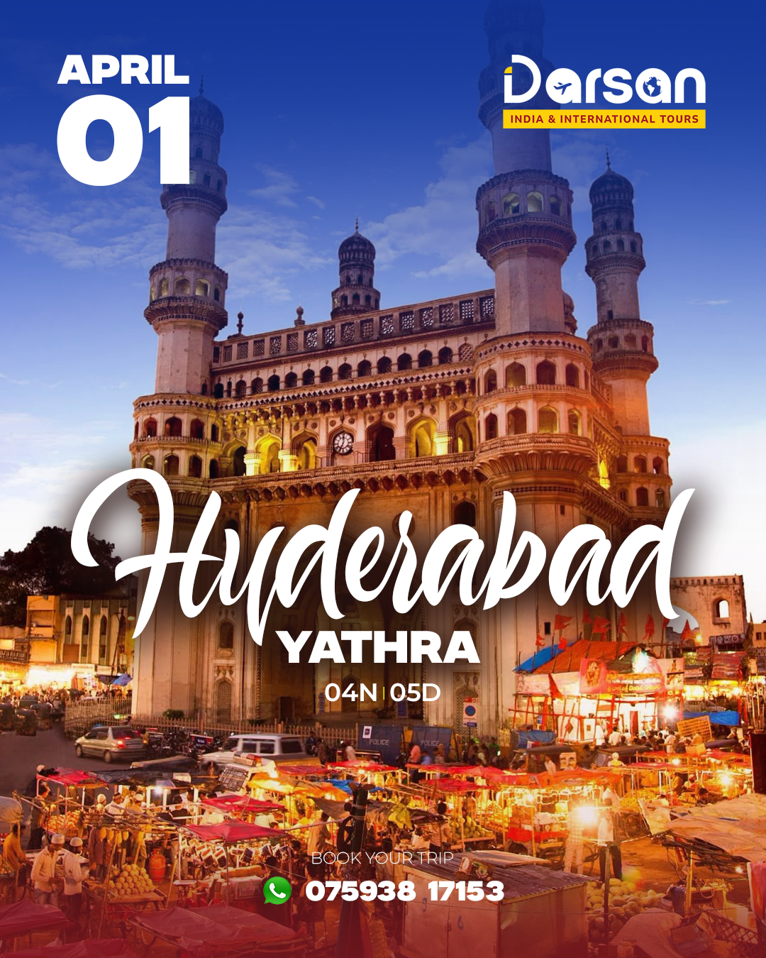 January 15, 2026January 15, 2026Domestic Hyderabad Group Tour – April 01 Hyderabad 5 Days / 3 Nights Group Trip by Train April 1 | 2025 Package Details Duration 04N 05D Starting Date April